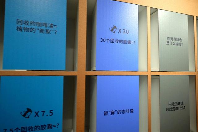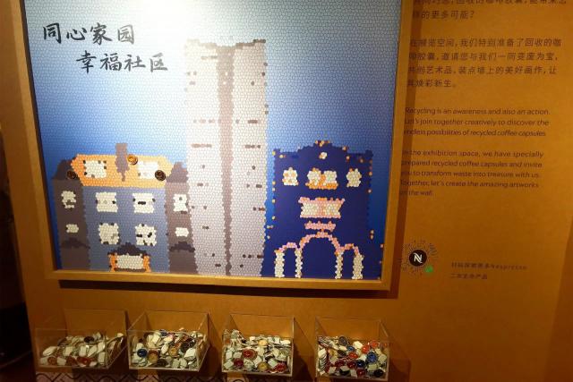 旅馆不仅展示了跑鞋、钢笔、木筷子和以回收咖啡渣和咖啡胶囊为原料制成的植物“新家”,还邀请走进旅馆的市民使用回收的咖啡胶囊,共同创作精美的艺术品。