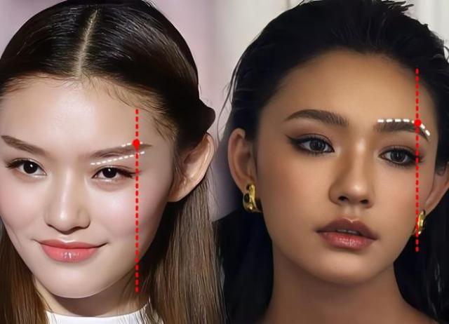 而且漂亮的眉骨应该是立体的,伸展的。将眉骨的高点向内移动,调整到大约等于眼角的位置。