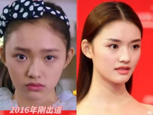 原脸五官大小比例适中,但细看不够精致。比如她最早被批评的嘴,上唇和唇阜线都不流畅,加上牙齿不齐,整张嘴又突出又显俗气。