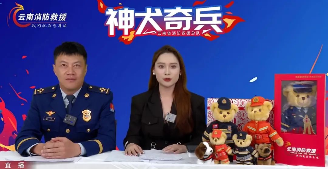 搜救犬帅气可爱的表现让网友赞不绝口。“狗太可爱了”和“充满安全感”...一波弹幕比一波高。直播间还有三轮抽奖。幸运的是,网友们得到了可爱的毛绒消防熊和卡通搜救犬。