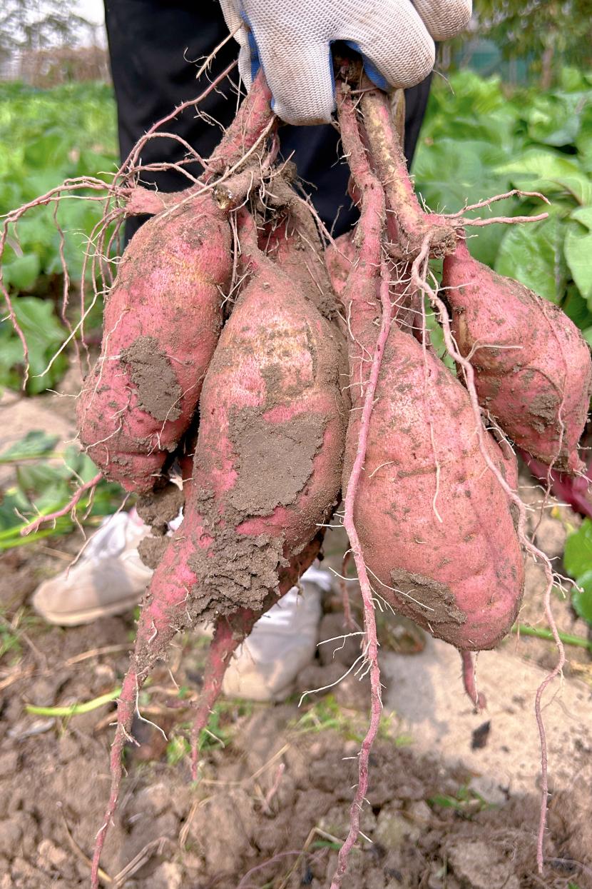 在池塘训练中,基本家家户户都会留出一片菜地种植红薯,等待秋冬季节的丰收。绿色的红薯地就像一片充满活力的海洋,红薯藤条在里面尽情伸展,贪婪地享受着阳光的滋润。轻轻拨开纠缠在一起的藤条,刨开棕褐色的土壤,可爱的红薯头就会冒出来,仿佛在和你打招呼。
