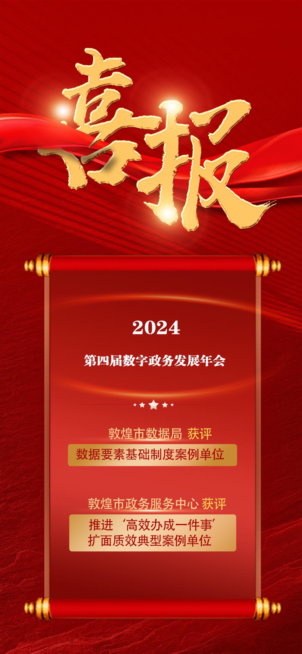 【喜讯】敦煌市荣获2024年第四届数字政务发展年会两项荣誉。