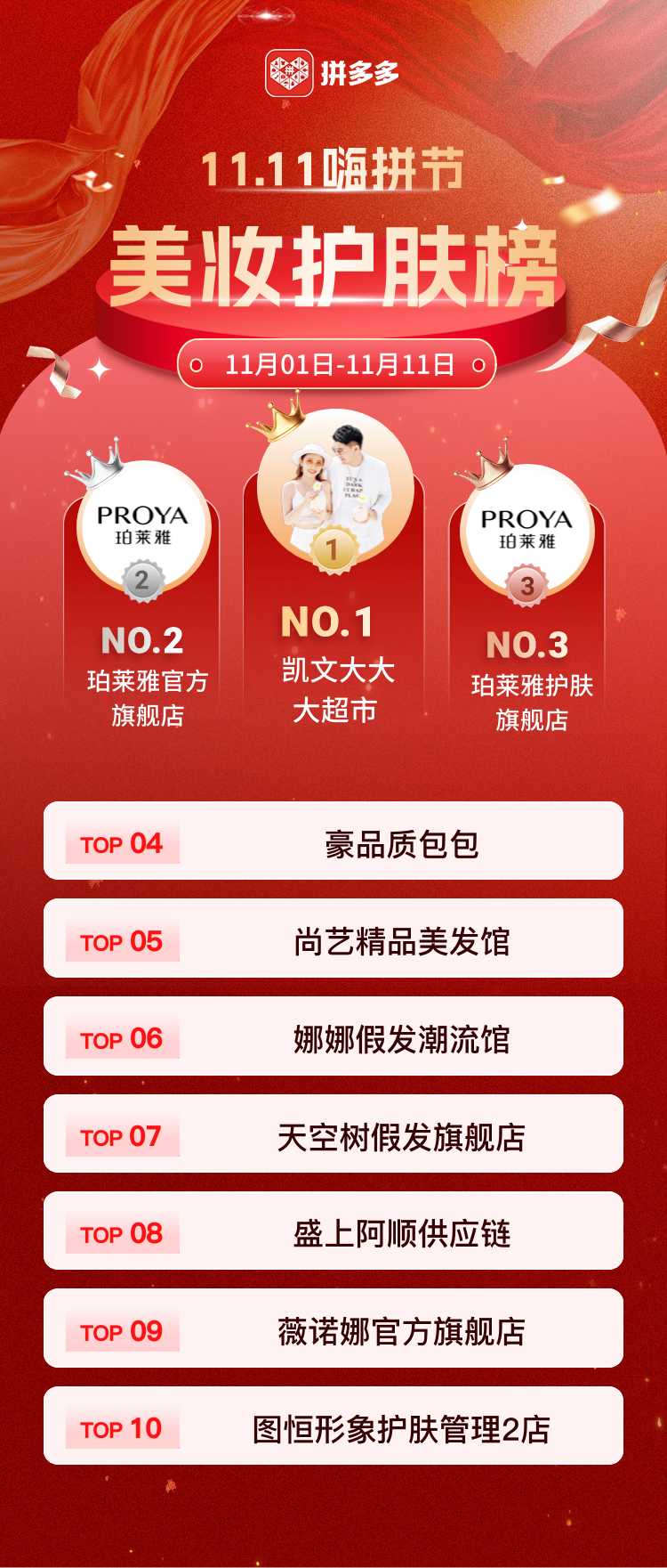 拼多多双11直播名单曝光 TOP2020在珀莱雅上榜。
