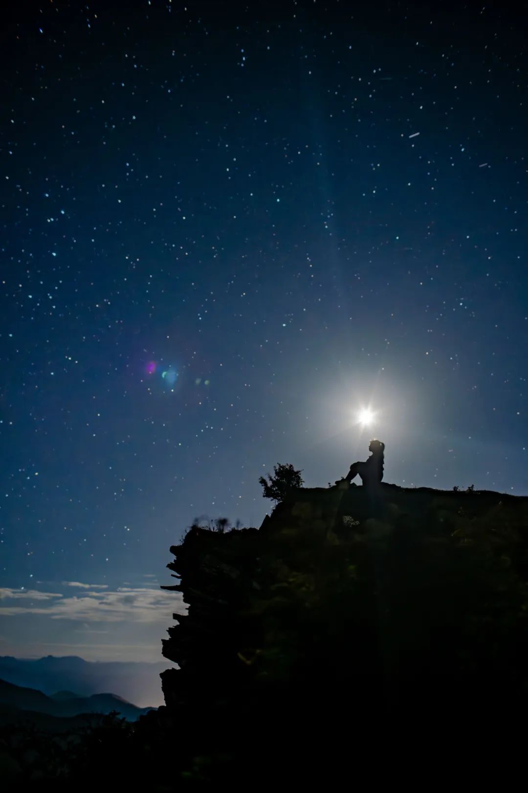 第一折,点点繁星初显。✨,散发着微弱而坚定的光芒。星星在墨蓝天幕上显得格外纯净,整个黄龙仿佛进入了一个宁静的童话世界。
