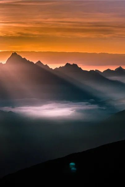 第三个折扣,随着最后一缕阳光隐藏在地平线下,山川森林的轮廓变得朦胧。在这微弱的阳光下,我慢慢陷入了柔和的黑暗。