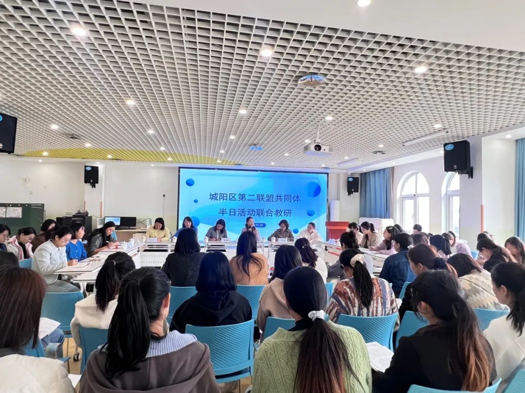 在城阳区第二实验幼儿园,城阳区学前教育第二联盟共同体半日活动联合教研。
