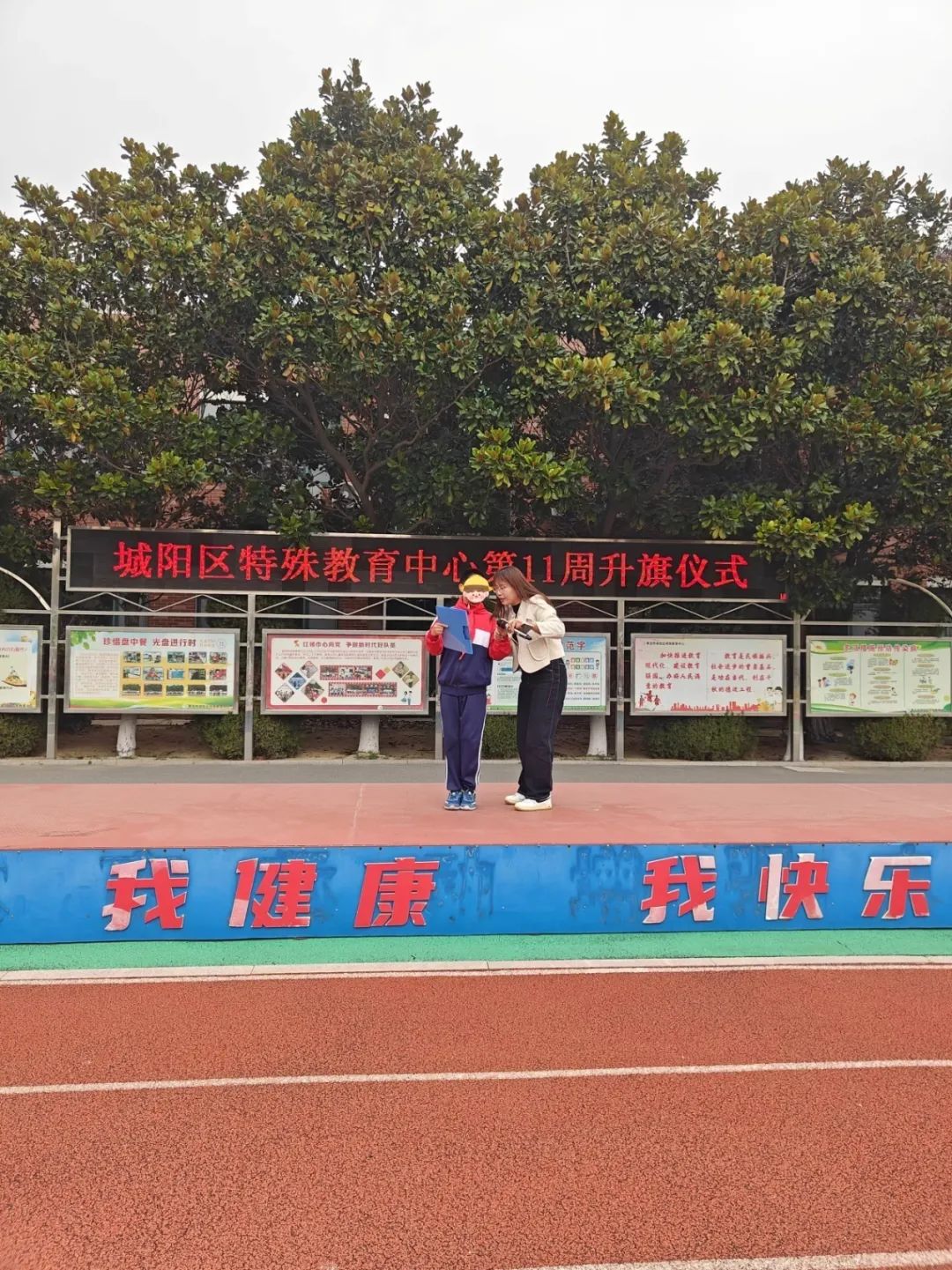 以“文明就在身边”为主题的升旗仪式在城阳区特殊教育中心举行。