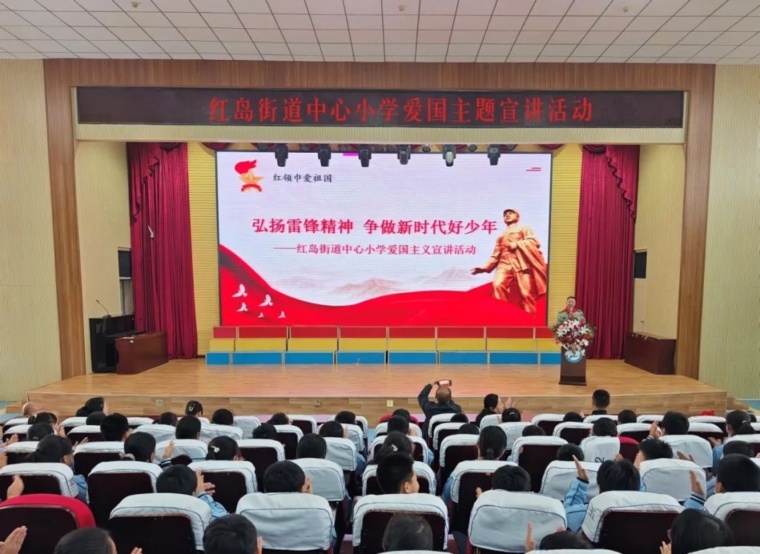 雷锋班第十一任班长宋若波被邀请到红岛街道中心小学为师生做爱国宣讲。