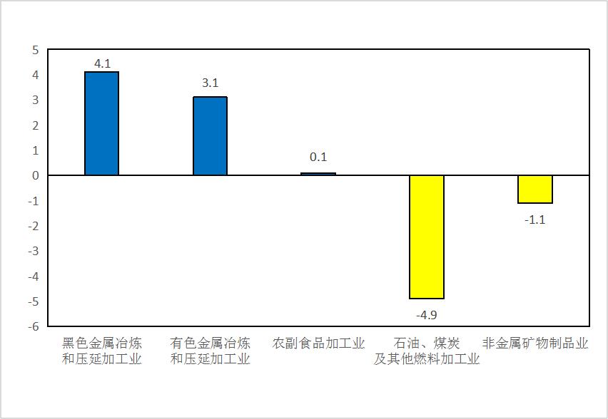 石油、煤炭和其它燃料加工产品的价格下降了4.9%。主要是国家发展改革委调整汽柴油价格,推动石油出厂价格下降。