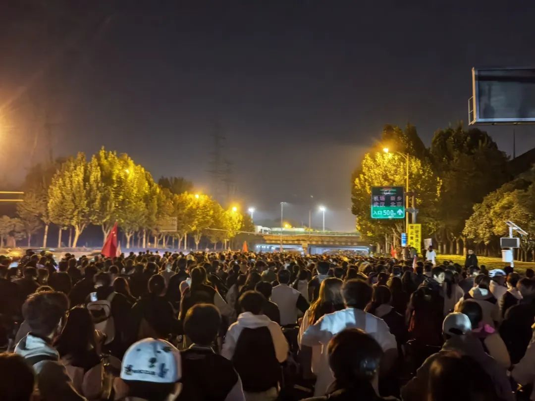 为了确保安全,11月8日晚,郑开大道上有多名交警和警察在不同的道路上值班,还有蓝天救援队、救护车,以及各大商家和群众自己设置的供应点。当大学生大声唱“让我们红尘相伴,活得潇洒……”青春的记忆又回来了,让人想起那句“想买桂花同载酒,永远不会像少年游。”