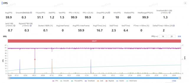 但红魔 10Pro 帧率一直是一条直线,一直没有发热降频的情况,因为它一点也不热。。