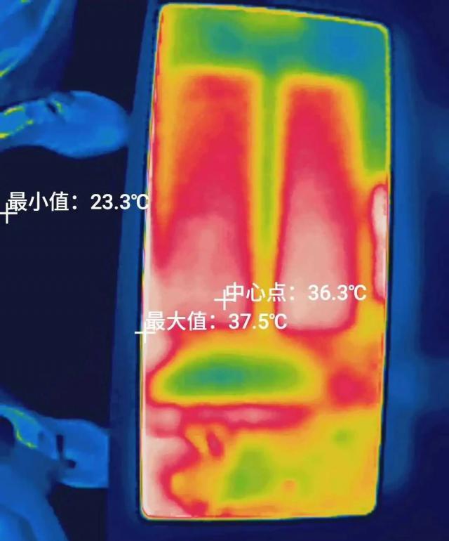 在平衡排热模式下,机身背面的最高温度只有 38.1 ℃,到快速排热那档风扇转速时,只有 37.5 ℃,简直太离谱了。。。