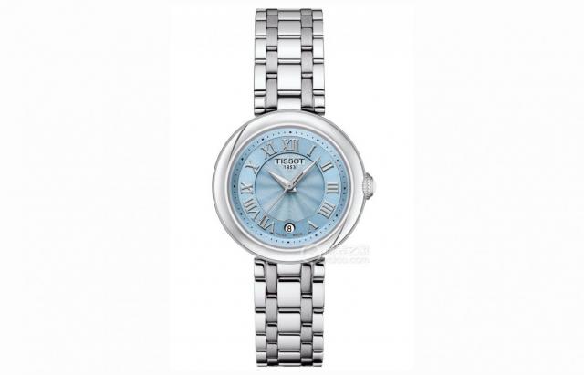 手表评价:作为天梭专门为女性设计的小美女系列,它从古罗马建筑中汲取了灵感,所以在这个系列中总能看到各种美丽的设计,但总能看到时代洗礼后的古典与永恒的优雅。但是这个天梭小美人系列 T126.010.11.133.00 手表圆润的精刚表壳与之搭配。 26 mm的直径非常小,结合浅蓝色珍珠母贝表盘,在光线的照射下呈现出一种冰蓝色表盘般迷人的效果,同时又非常梦幻。在温暖的表盘上,小三针的设计,经典的罗马字母时标,银色镀镍指针相互融合,更加清爽舒适。天梭家族的经典玫瑰图案在后盖上,凸显了女性的优雅与美丽。里面装载了瑞士制造的内部。 ETA F03.111 石英机芯,精确走时不必担心。50 大米防水功能还可以解决生活中的问题。