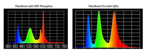 以前苹果一般都是用的 KSF 解决方案,由于其成本低,而且不含镉,但是最新的无镉 QD 膜片效率高,色域性能更好。