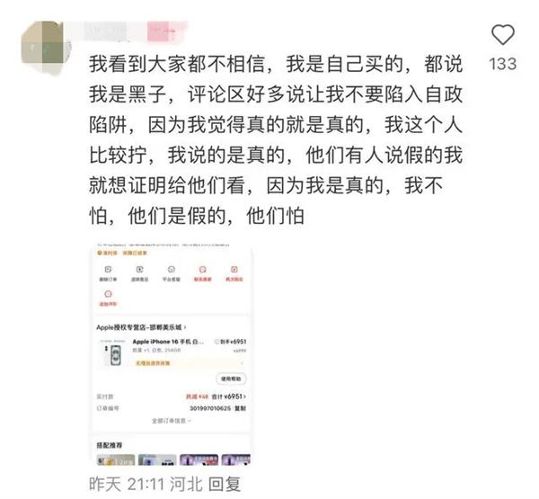 面对网友的质疑,女孩晒出了自己在苹果直营店下面的照片 iPhone 16 订单,这个女孩已经把情况反馈给苹果客服,等待苹果的回复。