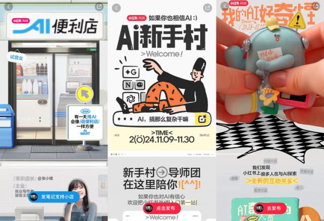 在小红书这个社区里,这些人和事都有交集, #AI 便利店在 #AI 新手村在 # 我的 AI 好奇等等,分享 - 围观 - 参与,促使小红书慢慢变成了 AI 圈子的集中地。