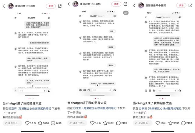 除了 DAN 哥哥,赛博解压捏潮,人机对骂,小红书简直集成了绝大多数。 AI 奇怪的行为大奖,上班儿没有疯狂,AI 猫猫巫师帽,复刻 AI 付航 passion 一切、各种 AI 网友辣评陪伴商品,AI 吐槽全世界。