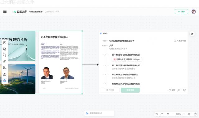 百度图书馆和百度网盘联合推出的“自由画板”完全摒弃了“面向文件类型”的设计逻辑,而是面向创作场景,让用户可以实现跨文件类型的内容编辑、一站式存储、共享、整理和处理照片、文字和文字。PPT、PDF、EXCEL、声音、视频等内容,并且可以实现相互转换和最终输出。