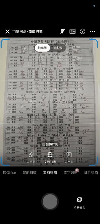 例如,在做另一个关于它的事情 iPhone 在大幅降价选题的信息中,我们会直接拍下从华强北获得的报价单,用“简单扫描”一扫就可以转化为 Excel 表格。