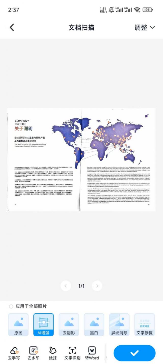 现在,百度网盘的“简单扫描”几乎完美地满足了我对纸质材料的电子化需求。比如前阵子,我参加了。 LED 光明龙头洲明科技发布会正式提供了很多书面材料。我用百度网盘的“简单扫描”拍摄,内容转换只需要几秒钟就能完成。最后得到的文字和纸上的文字一样清晰。
