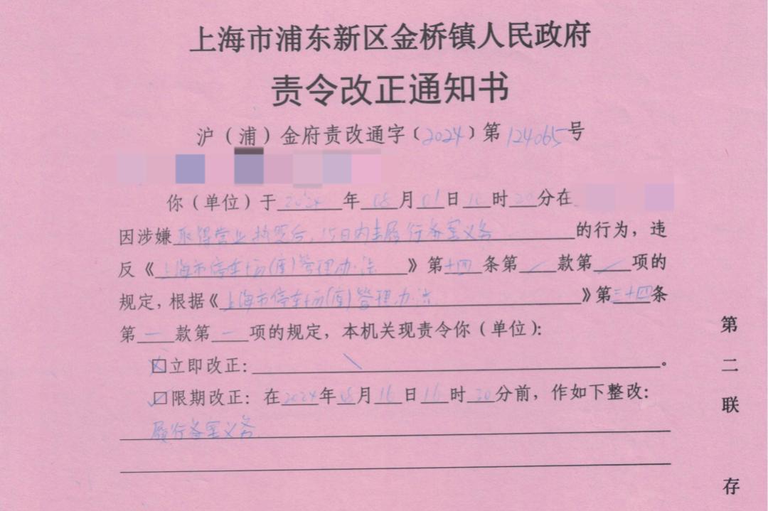 针对这种情况,执法人员立即对停车场经营者进行了采访,阐述了停车场备案流程,并出具了《责令改正通知书》,要求其在规定时间内向管理部门备案。