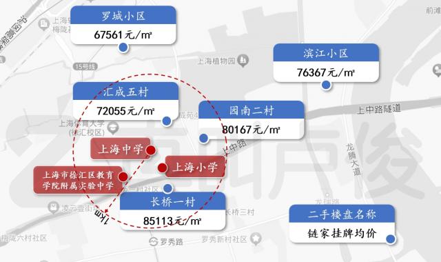 在高中方面,我们选择了上海中学和交通大学附属中学作为样本(两者都是上海四大名校),了解链家挂牌价格。