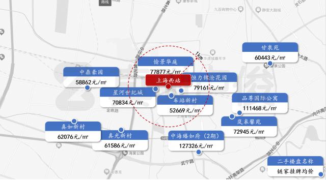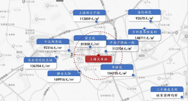 观察上海火车站、上海西站、上海南站周边小区的价格,似乎没有被火车站抬高。