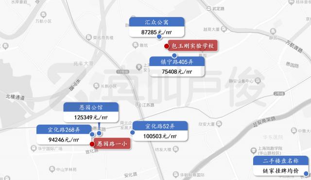 包玉刚实验中学与愚园路一小段周边房价进行比较,数据 2024 年 1 月