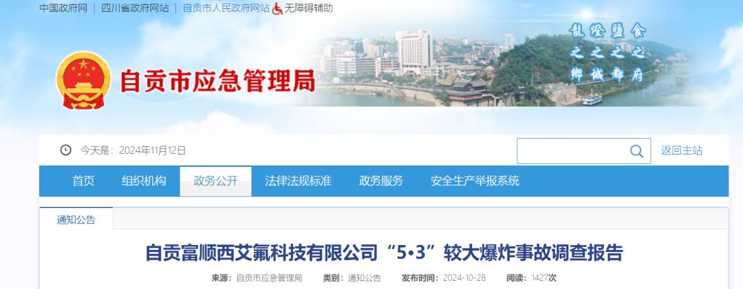 最近,自贡市应急管理局发布了《自贡富顺西艾氟科技有限公司“5.3”大爆炸事故调查报告》。