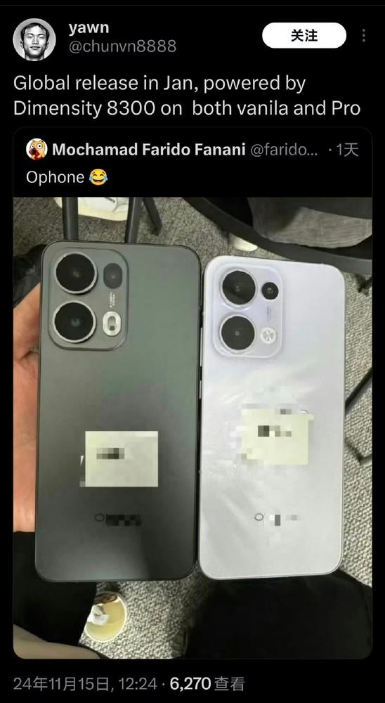 根据消息人士透露,Reno13 和 Reno13 Pro 所有人都将配备MTK天玑 8300 与之前传闻中的天玑不同,芯片 9300。虽然定位于中端市场,但其性能仍值得期待。