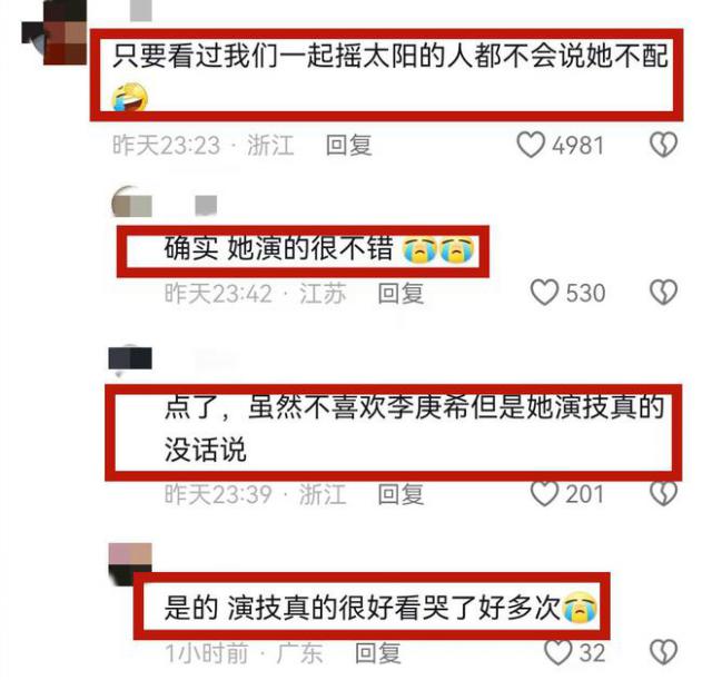 有些网民认为李庚希演技出色,得奖当之无愧。