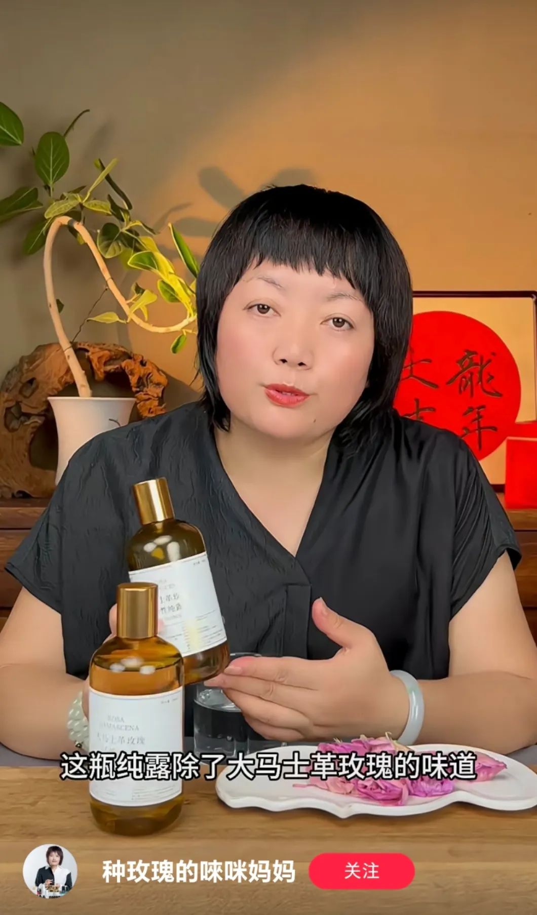 于是隋美芝决定亲自上阵,做起了主理人直播。她自认为“不上镜”,但种了6年玫瑰,一遍遍调配方,改产品,她无疑是最了解产品来由、懂怎么用的人。这是一条从没试过的路。