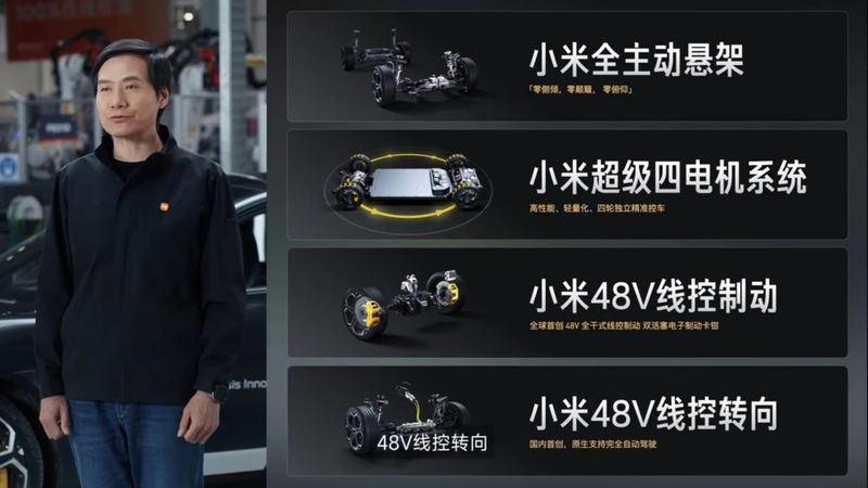 广州车展开幕前一天,14日一早,小米汽车又发布了智能底盘预研技术,包括小米全主动悬架、四电机系统、48V线控制动、48V线控转向等。