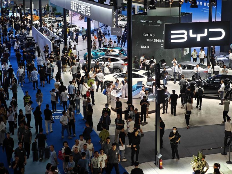 场馆外,在刚刚过去的“金九银十”,中国新能源汽车继续一路“狂飙”。