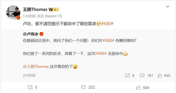 卢伟冰:Redmi K80系列全面满足销冠的一系列需求