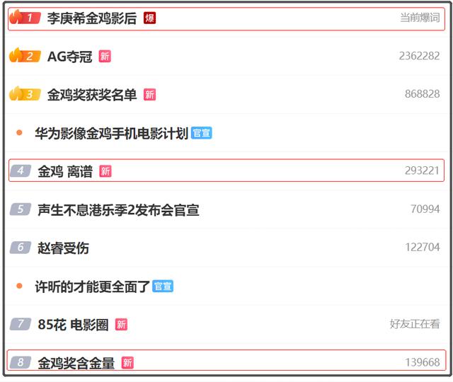 虽然金鸡奖已经告一段落,但是围绕奖项的争议还没有结束,整个社交媒体直接炸开了锅,“金鸡奖离谱”“金鸡奖含金量”等热搜词条格外耀眼。