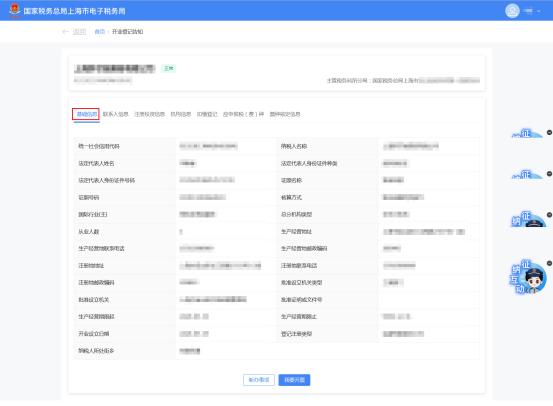 该系统跳转到开业登记通知界面,显示纳税人的基本信息、纳税申报(费用)种类和票种核定信息等。