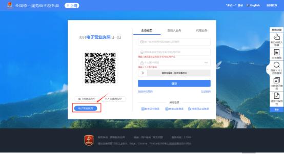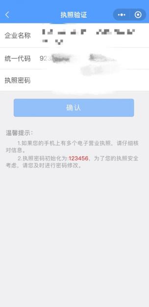 打开微信扫描二维码,选择要登录的营业执照,输入密码后点击“确定”进行执照验证。