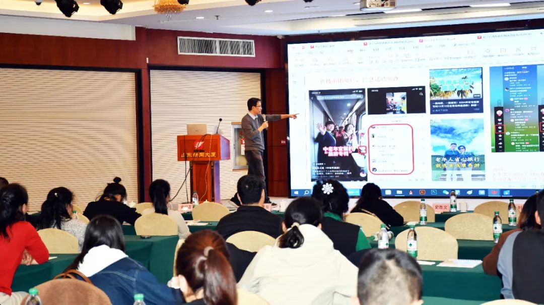 济南大学文化与旅游学院副教授、硕士研究生导师张博探讨了旅行社如何利用新技术、开拓新领域、创造新场景,以“旅行社营销新技术、新领域、新场景”为主题,针对当前旅游市场的具体情况,实现营销转型升级。他的解释简单易懂,为与会者提供了大量的实践案例和启发。