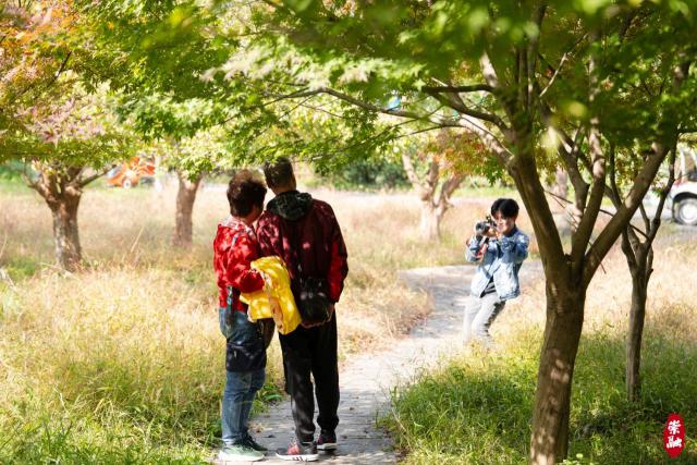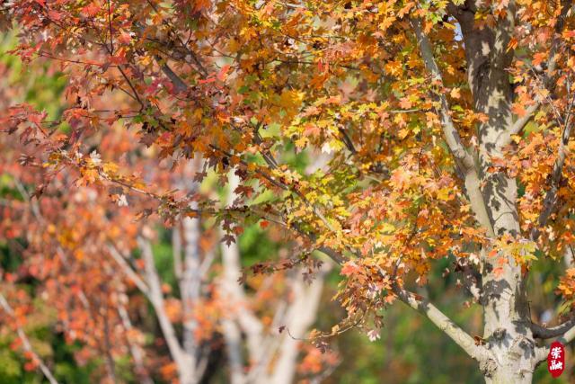 在东平国家森林公园,枫叶正在悄然生长,从绿色变成黄色,再由黄色变成红色,就像大自然的调色板一样,绽放出耀眼的光彩。在湖边和小路旁边,枫叶随风起舞,展现出不同的秋天魅力。层层枫叶美如油画,令人陶醉。游客停下来观看,打卡拍照。