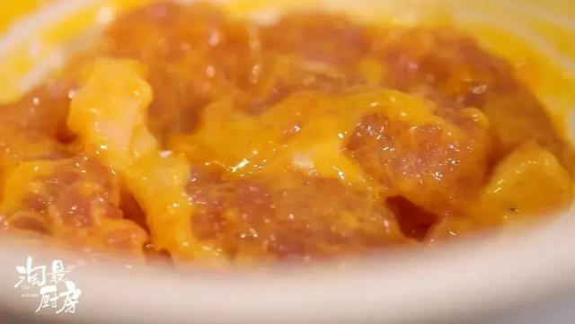 将2个蛋黄放入切好的里脊中,然后抓匀。