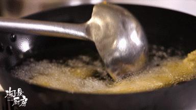 等油温高了,再炸一次。,把排条的内部完全炸熟。