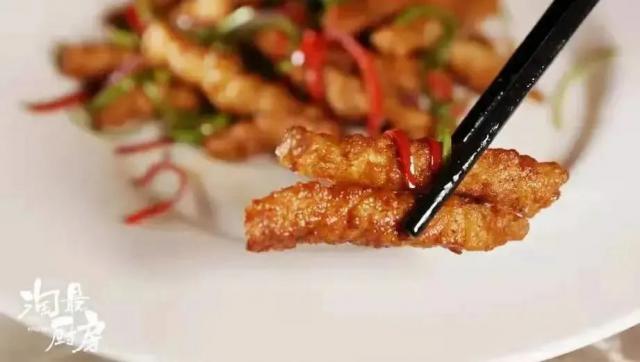 开中火,起锅烧油。在油稍微冒烟的时候,放入里脊肉炒制成型。