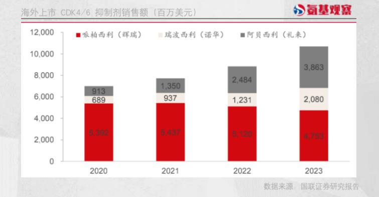 乳腺癌的治疗就是一个典型的例子。例如,对于激素受体阳性乳腺癌,内分泌药物最初是主流治疗方法,但一些肿瘤细胞激活了CDK4/6通道以生存,导致抗药性。因此,有针对性的CDK4/6抑制剂应运而生,创造了100亿美元的市场。