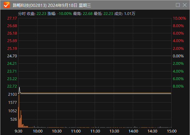 九月十三日,路畅科技宣布,湖南中联重科智能高空作业机械有限公司99.5320%股份,原计划向中联重科等27名交易对方发行股份,购买其持有的股份,并且计划向不超过35个特定对象发行股票募集配套资金。鉴于市场环境发生了很大变化。,为了维护上市公司和广大投资者的利益,该公司决定终止此次重组,并且取消了深圳证券交易所的相关申请文件。公告第二天,路畅科技收盘跌停。