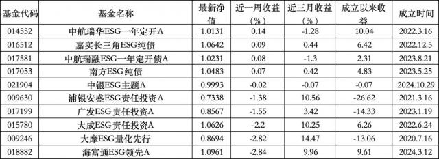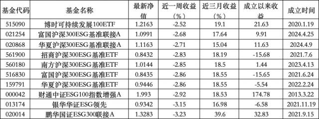泛 ESG 主题主动型基金回报周榜 TOP10