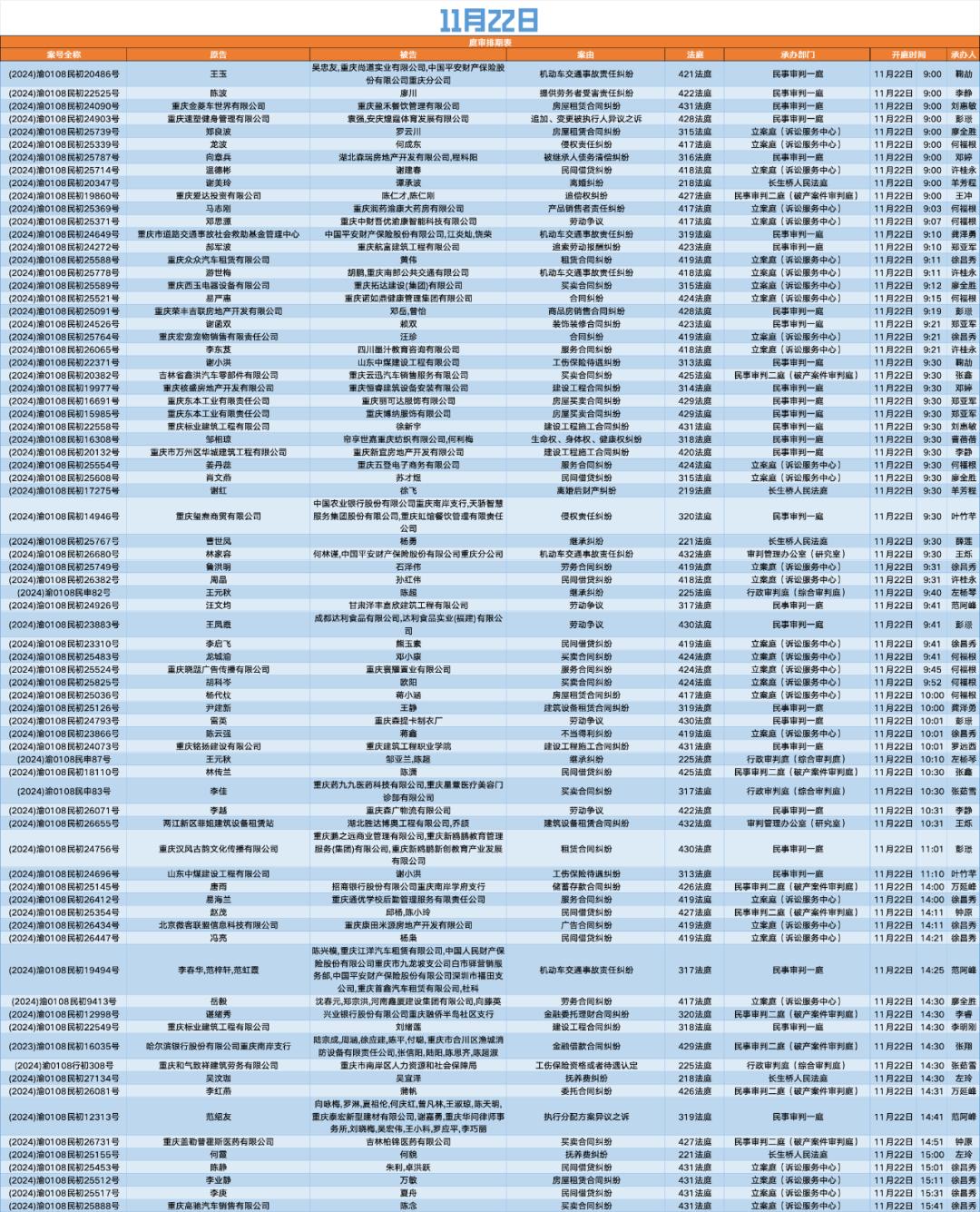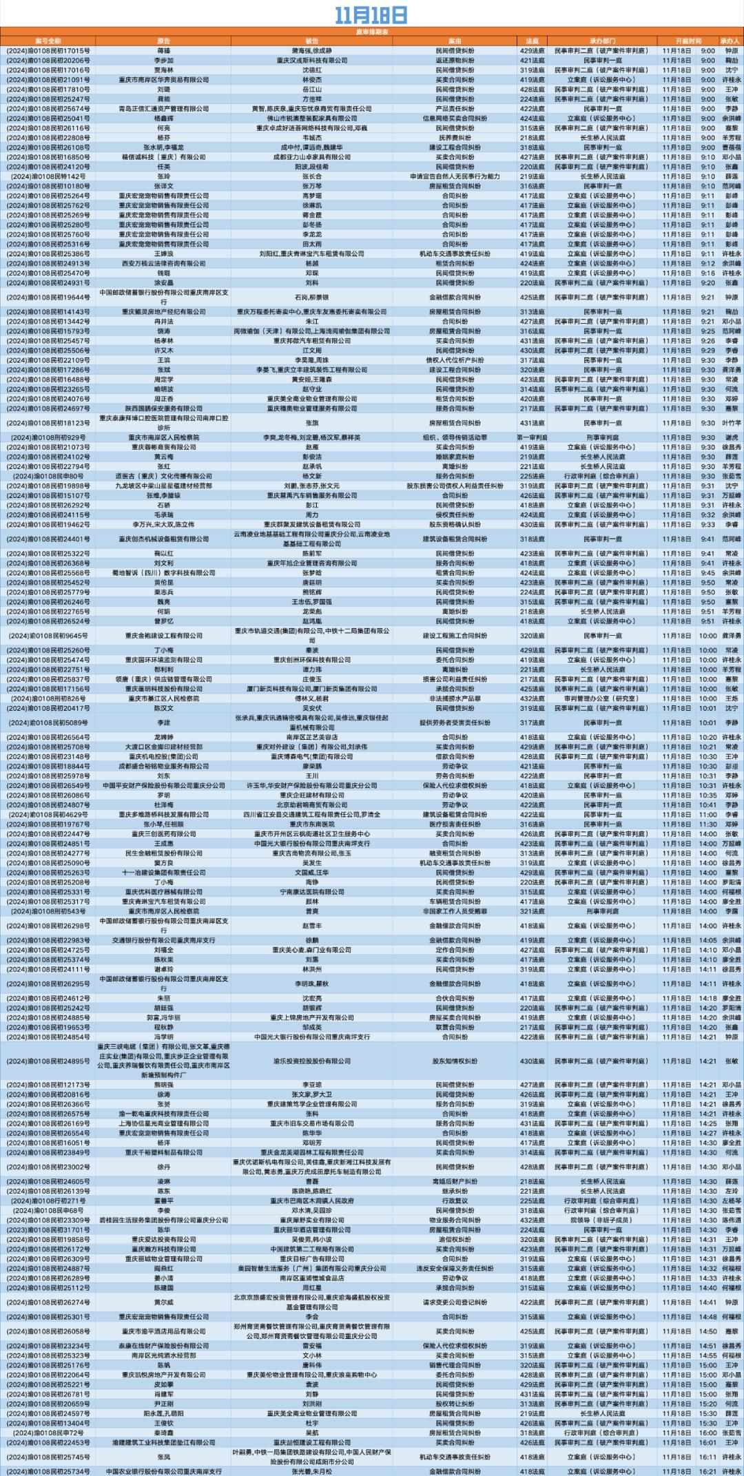 一目了然地查看南岸法院的庭审排期表(2024.11.18-11.22)!