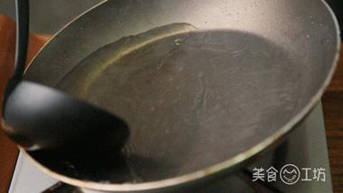 4. 锅内滚油(多倒一点油),油温至 180 ℃上下,也就是锅里稍微有烟升起时,先舀一勺油备用。