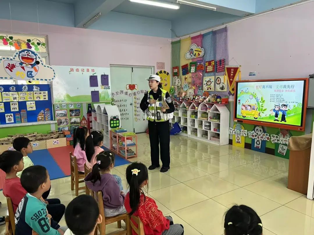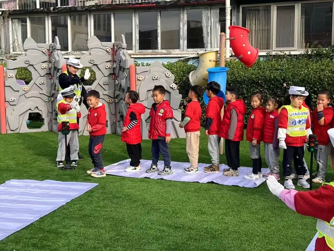 随后,交警带领孩子们走到户外。通过模拟现实中的十字路口场景,孩子和老师可以成为十字路口的交警、行人、骑行者和司机。通过现场纠正和演示交通违章和不良习惯,他们可以进一步起到警示教育的作用,提高自我保护意识和能力。活动结束时,交警还带领孩子们学习了交通安全儿歌,让他们深深植根于自己的内心,比如牵着父母的手走,过街走斑马线,红灯停绿灯,大车盲点不停。