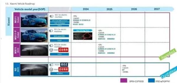 另外,有博主还曝光了一张来自博世的小米汽车产品路线图。据路线图显示,小米汽车正在进行。 2025 年将推出 SU7 Ultra 量产版和全新纯电 SUV 车型 MX11,但在 2026 2008年,计划推出一个代号。 N3 的增程 SUV。